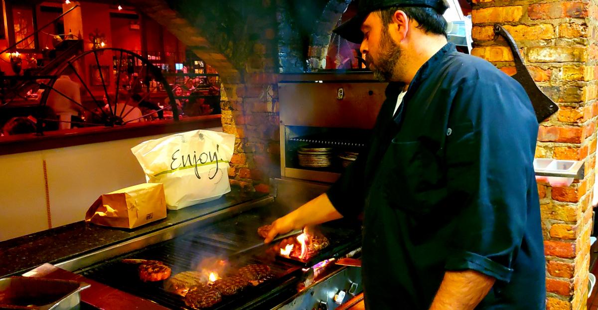 The regional multi-chain location serves their famous steaks and chops, fresh fish, hearty hand-packed burgers plus chicken and bbq ribs slow roasted in Jimmy's wood-burning rotisserie.