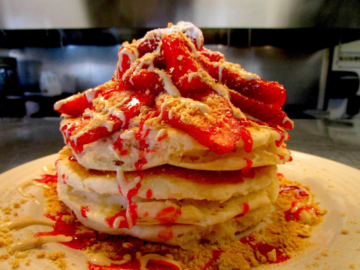 The famous Strawberry Pancakes at Stacked Pancake House in Oak Lawn