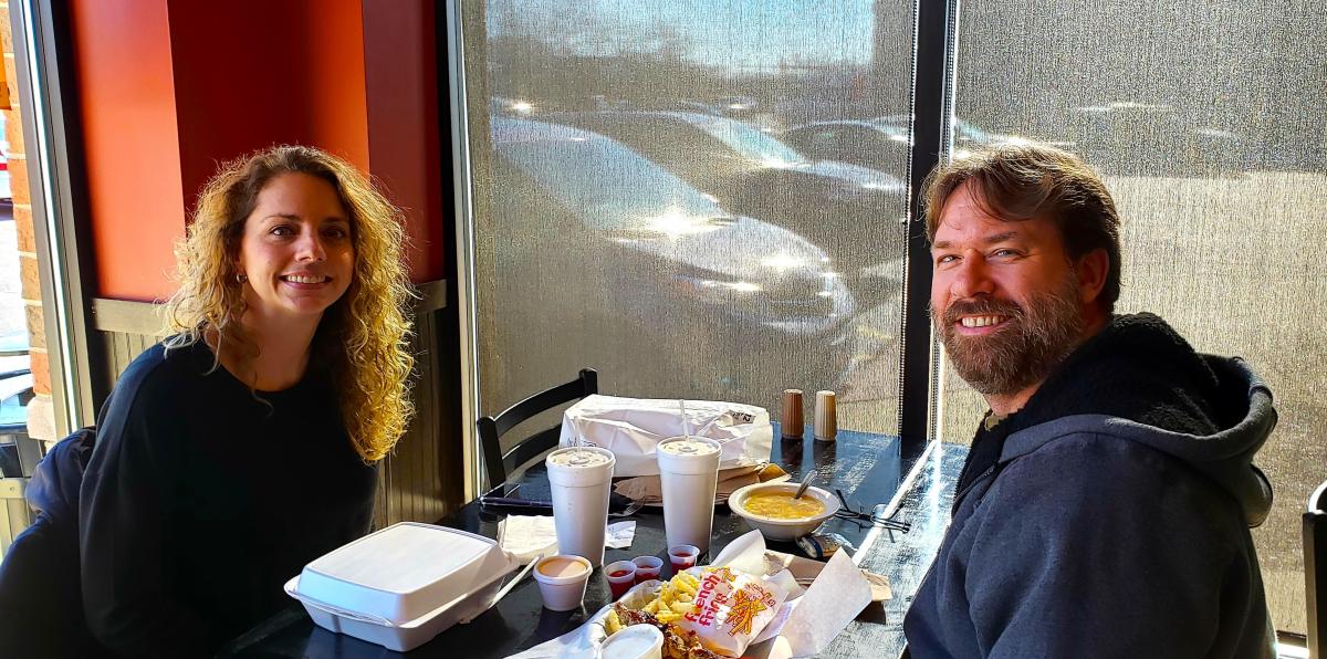 Couple enjoying lunch at Charkie's Restaurant in Carol Stream