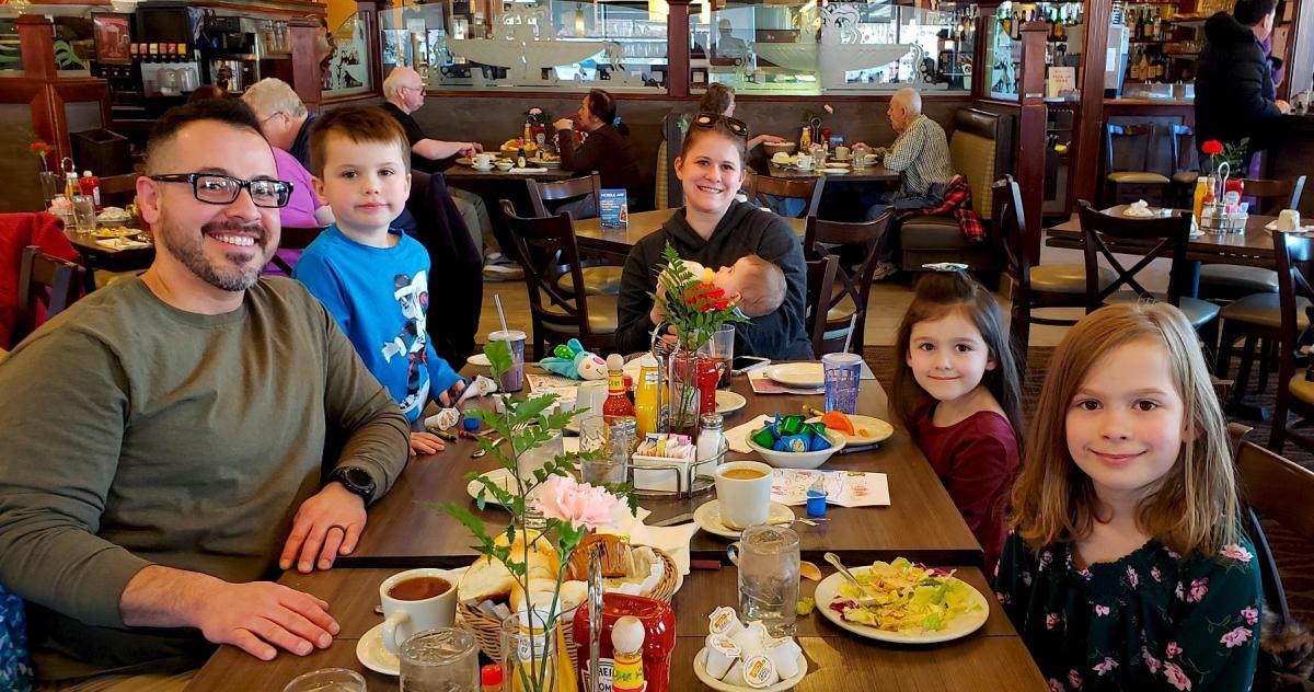 Family enjoying lunch at Niko's Breakfast Club in Romeoville