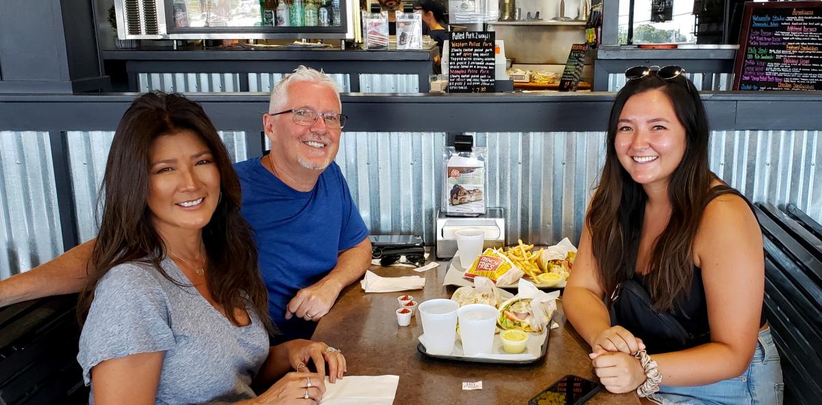 Family enjoying lunch at Brandy's Gyros in Chicago