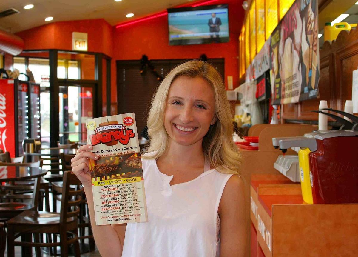 Happy customer at Brandy's Gyros in Chicago (on Harlem Ave).