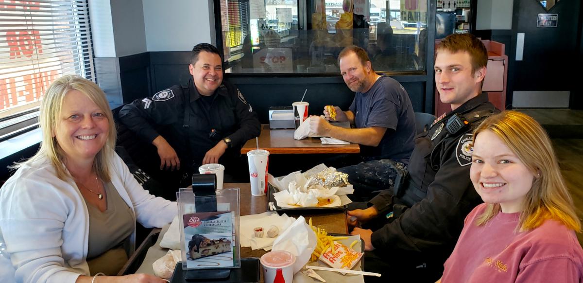 Police officers enjoying gyros at The Works Restaurant in Glenview