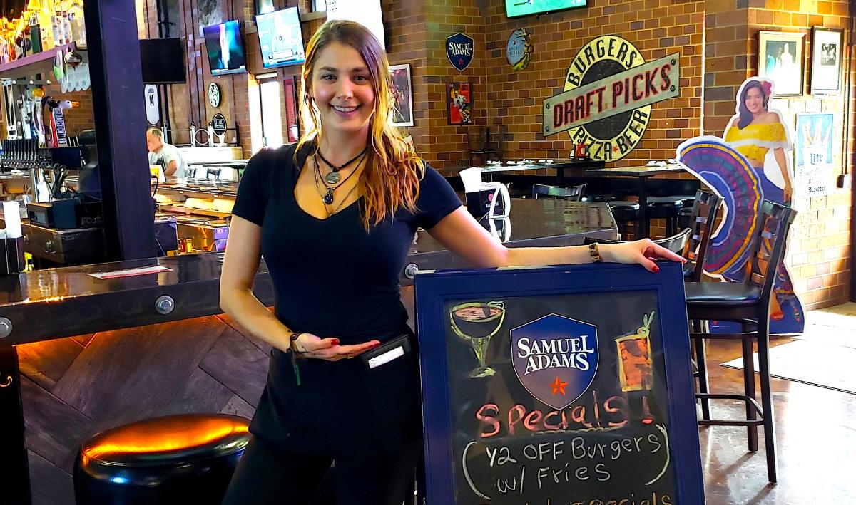 Friendly server at Niko's Red Mill Tavern in Woodstock