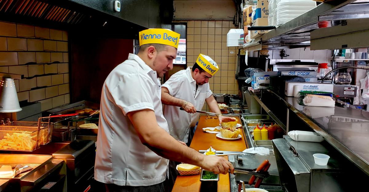 Hard working kitchen crew at Franksville Restaurant in Chicago