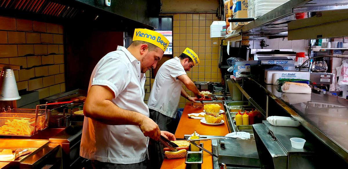 Hard working kitchen crew at Franksville Restaurant in Chicago