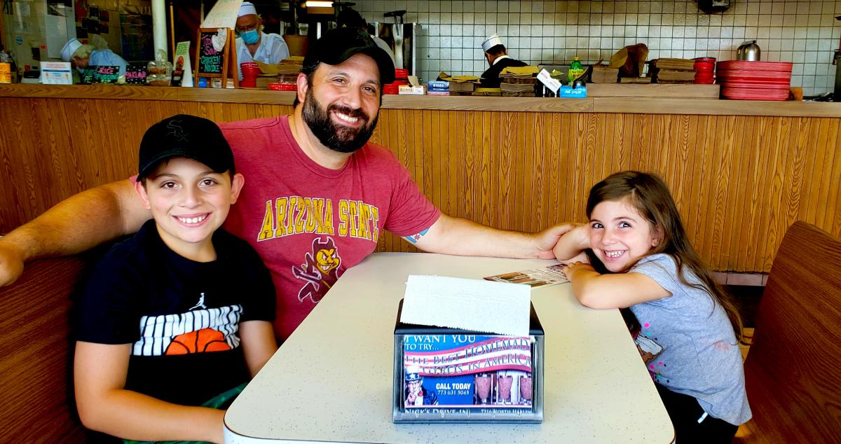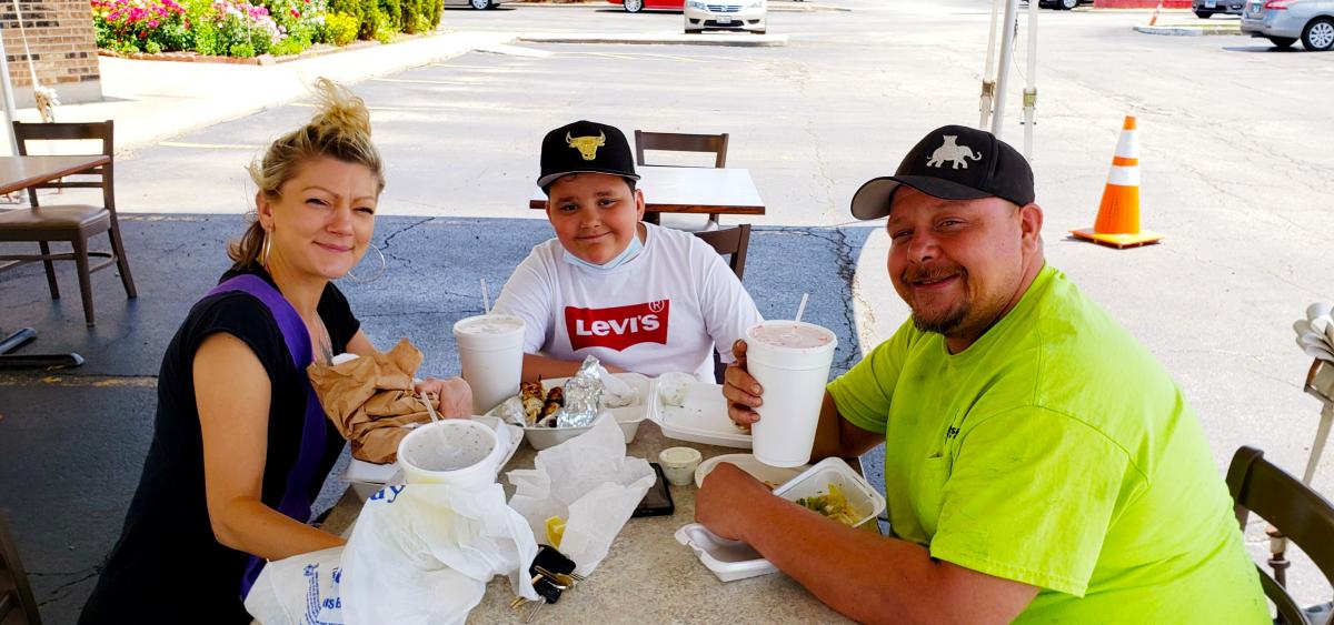 Family enjoying lunch at Nick's Drive In Restaurant in Chicago