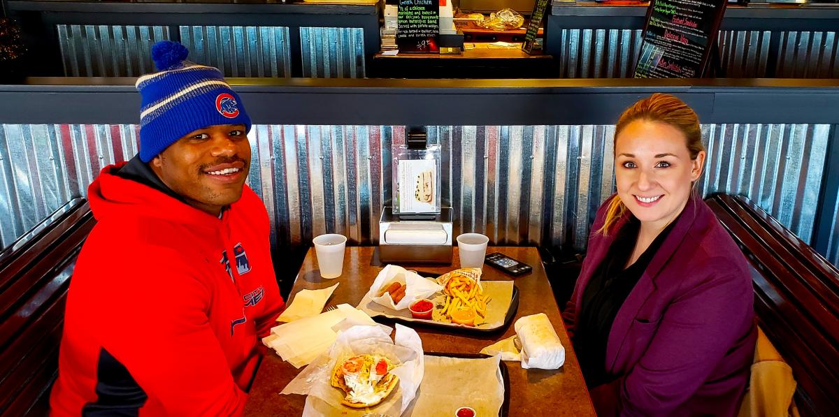 Brother and sister enjoying lunch at Craving Gyros in Lake Zurich