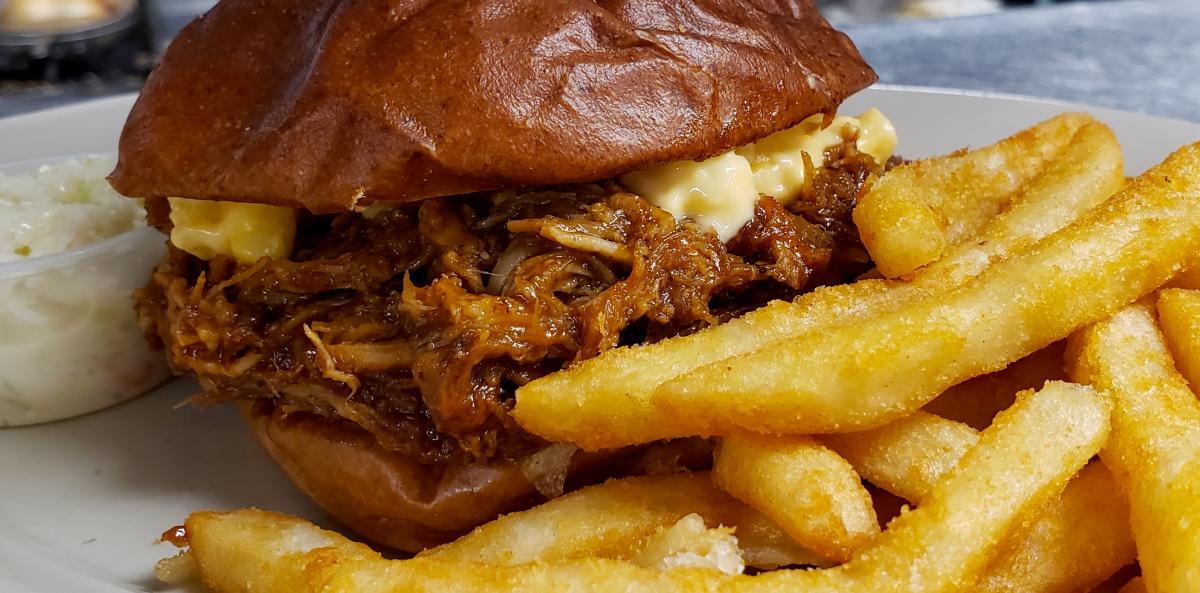 The famous pulled pork sandwich at Niko's Red Mill Tavern in Woodstock