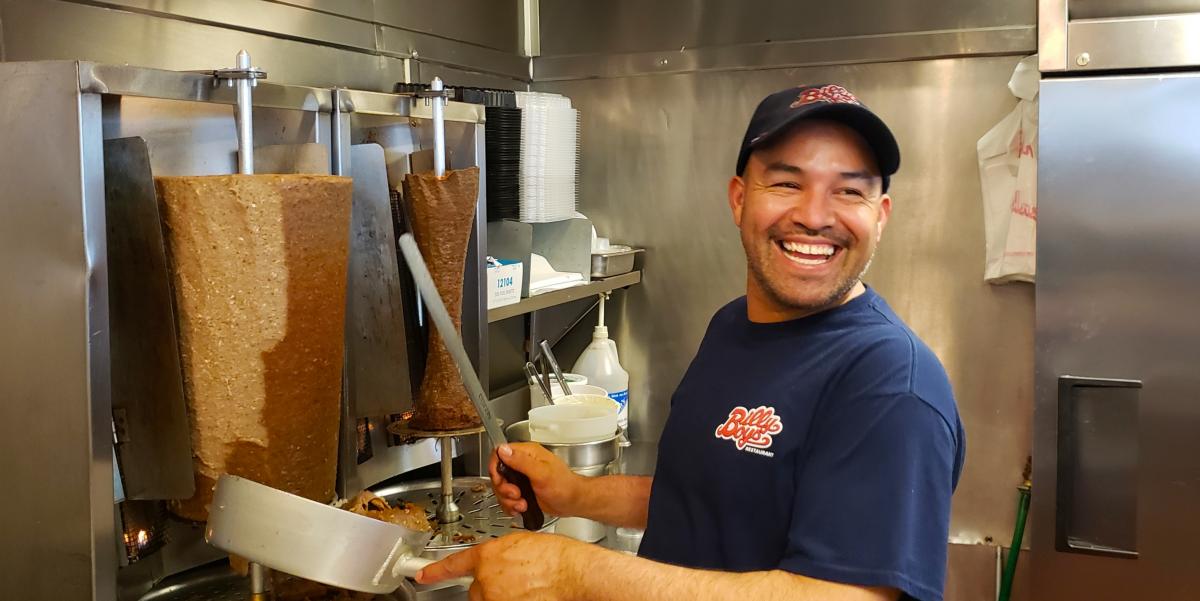 Slicing the famous gyros at Billy Boy's Restaurant in Chicago Ridge