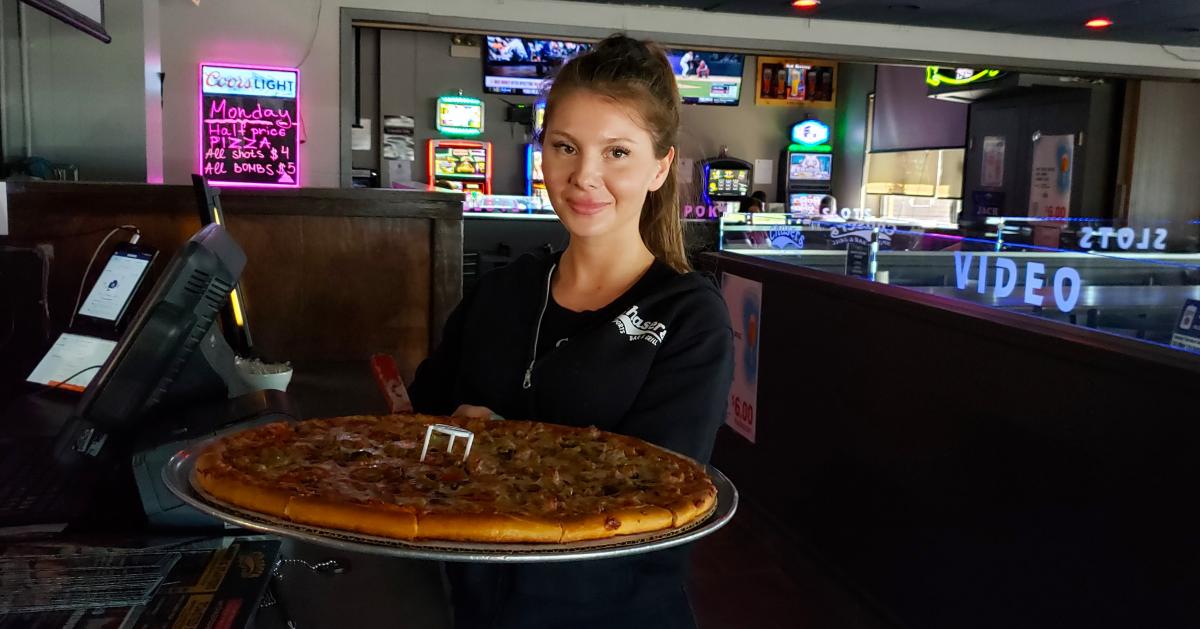 Friendly server at Chaser's Sports Bar & Grill in Niles