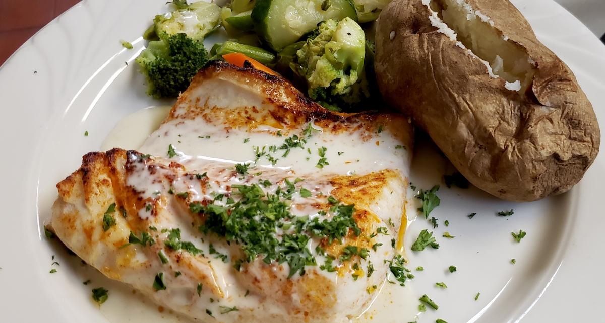 Alaskan Halibut at Palm Court Restaurant in Arlington Heights