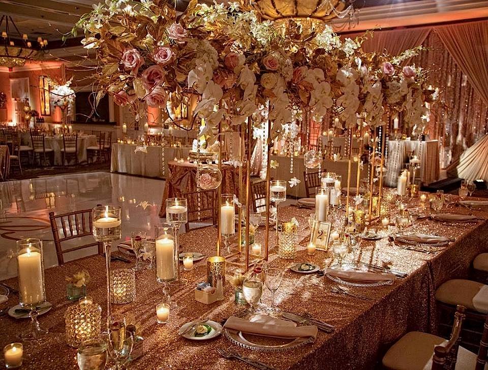 Beautifully decorated ballroom at Concorde Banquets in Kildeer