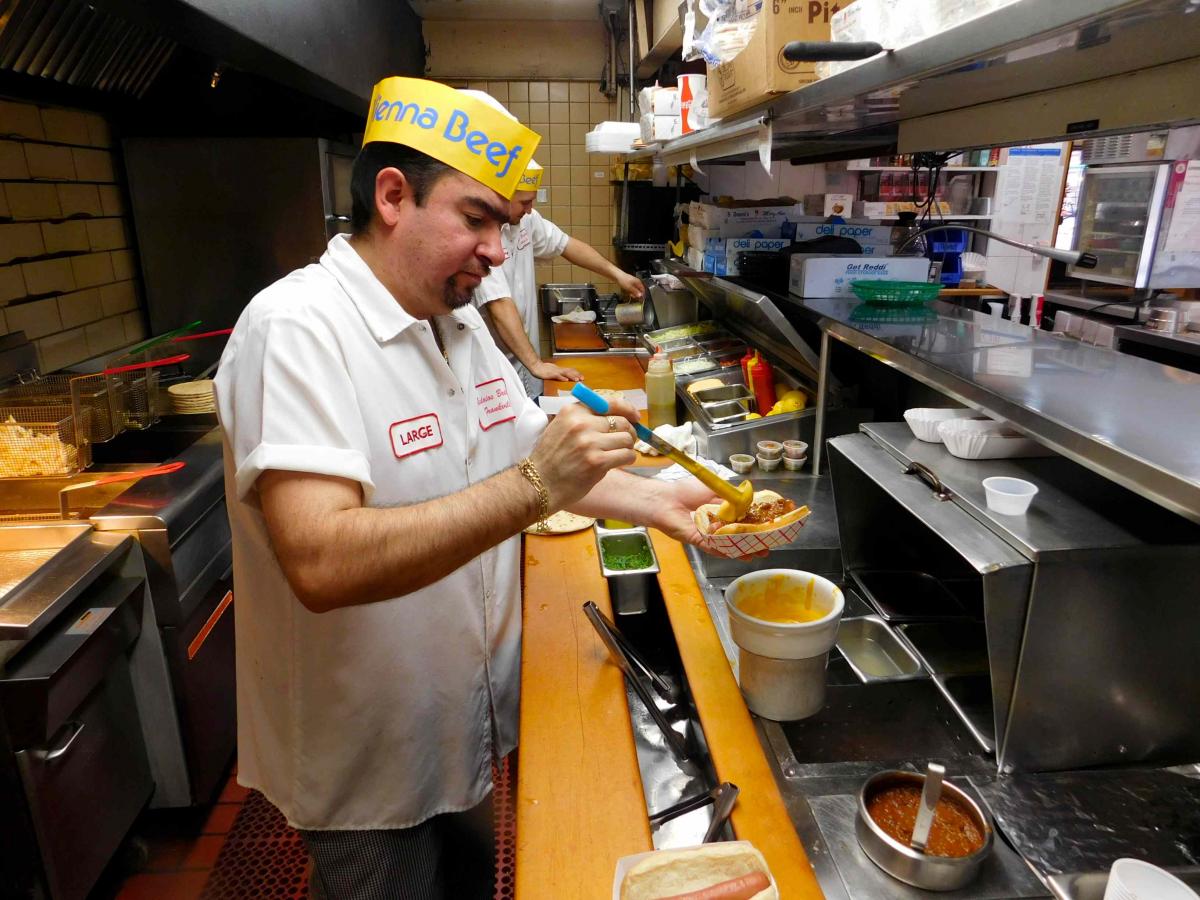 Hard working kitchen crew at Franksville Restaurant in Chicago