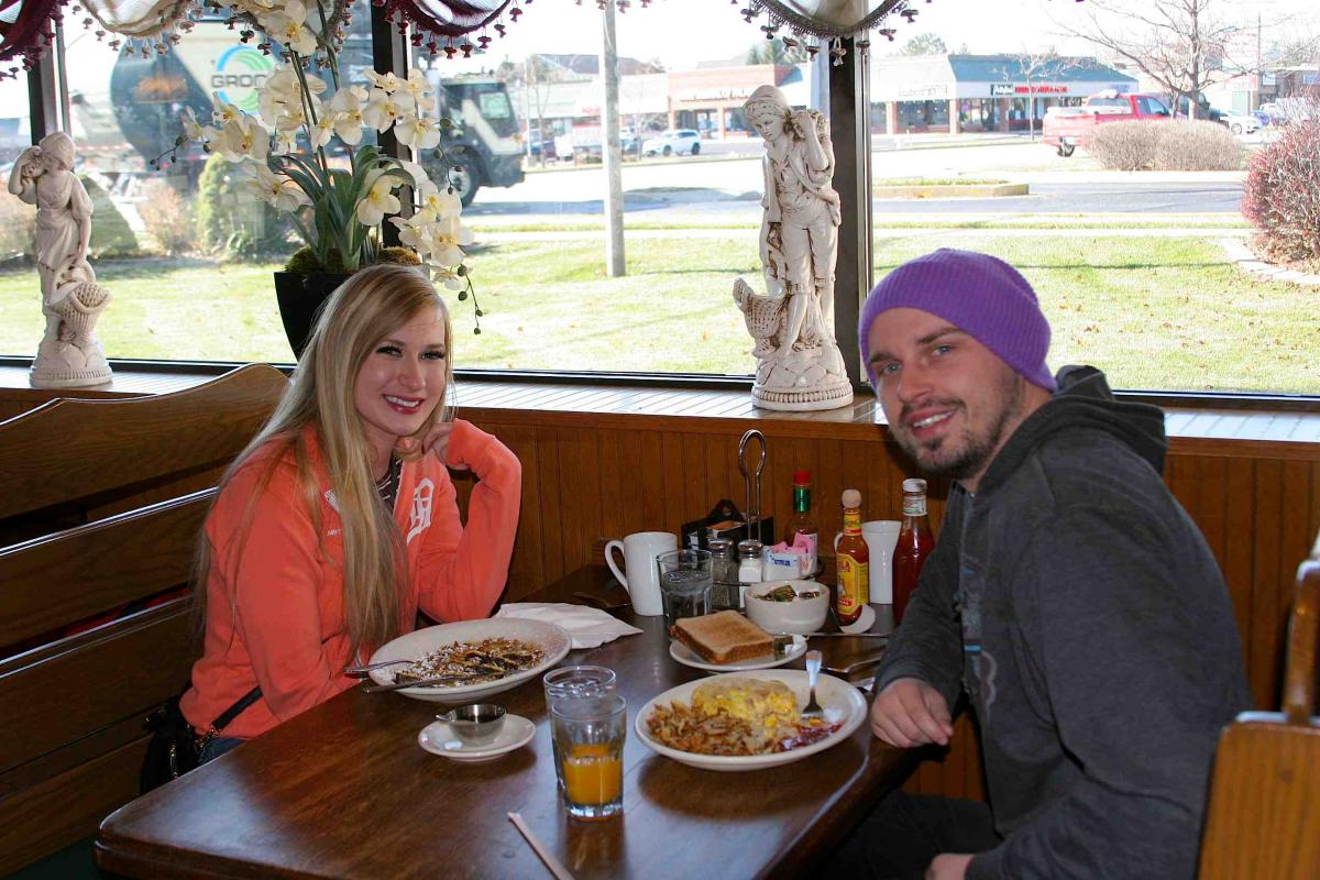 Couple enjoying breakfast at Billy's Pancake House in Palatine
