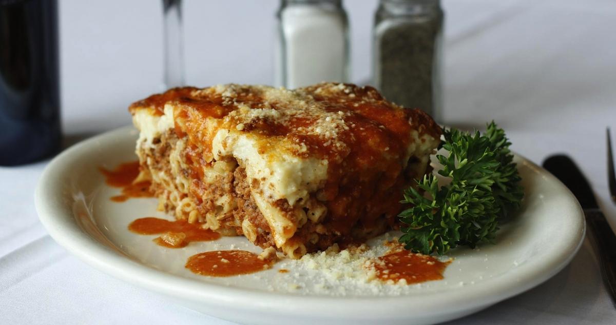The famous Pastichio at Psistaria Greek Taverna in Lincolnwood