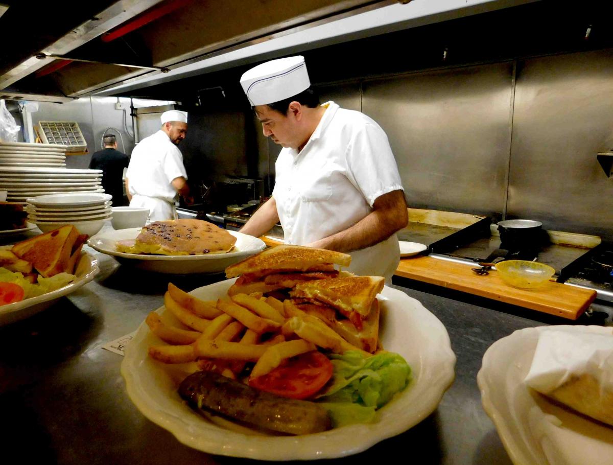 Busy kitchen staff at George's Family Restaurant in Oak Park