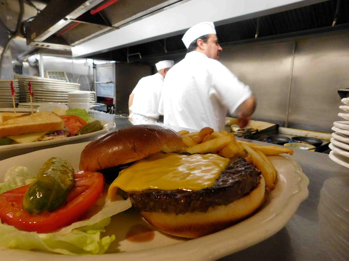 Hearty cheeseburger at George's Family Restaurant in Oak Park