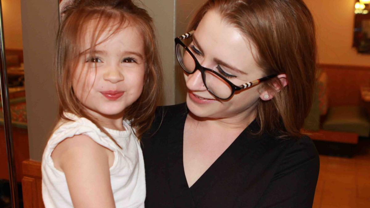 Friendly server with baby at Christy's Restaurant & Pancake House in Wood Dale
