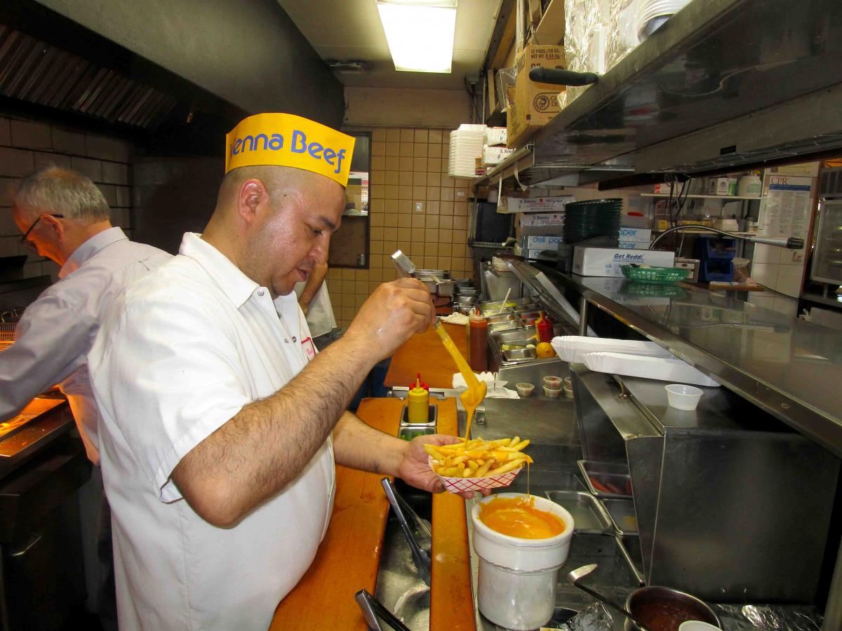Hard working kitchen crew at Franksville Restaurant in Chicago